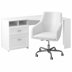 This desk-and-chair set lets you create an instant home office just about anywhere. Its design features a compact triangular corner-style desk that helps save space. It's built from engineered wood and it rests on straight legs. The desktop area has plenty of room for a laptop or computer, as well as notebooks and other writing needs. This desk gives you lots of room for storing and organizing files and office supplies: It has 2 drawers set on ball-bearing glides, as well as 2 open shelves. Plus, this desk is fully reversible, so you have the option to set it up in the way that works best for your space. And a convenient wire management system helps you create a clutter-free area. Best of all, it includes a matching chair to complete your home office.What's Included?Office Chair