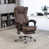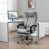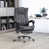About This ProductThis executive chair covers all the necessary comfort points, so you can work in style for longer. It has a sleek metal frame that rests on a 5-star base with casters, making it easy to glide from task to task. This office chair is also wrapped in microfiber with vertical channels and lots of foam padding for the utmost of support. Our favorite part? It features a height-adjustable seat, a tilting mechanism, a 360° swivel, and a remote that lets you recline. You can also use the massage and heat buttons to give you additional lumbar relief. A footrest and waterfall seat are also included.FeaturesBack heating and six vibrating massage motors for the back, lumbar, and thighs along with three modes and three heating levelsThe timer for a massage at 15, 30, or 60 minutes that will shut off on its ownReclines up 135° and has a 360° swivel, adjustable height, and a retractable footrest for support and comfortA wired remote control to adjust massage and heat functions, with a side pocket to store it when not in useThick cushioning made from microfiber with armests that have enhanced paddingShow More