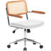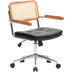 This boho task chair brings a blend of mixed materials and stylish flair to your workspace. With a rattan back and faux leather seat, it combines comfort with a touch of natural texture. The silver metal frame adds a sleek, modern edge, while the fixed wood arms offer a warm contrast. You can swivel, tilt, and adjust the height to find your ideal position for those long workdays. Plus, the locking wheels make it easy to move around your office. Spot clean as needed to keep it looking fresh. FeaturesRattan backrest: Provides comfortable support and natural ventilationPU seat: Comfortable and soft, easy to clean, and easy to maintain360-degree rotating movable casters: Easy to rotate the body for easy interaction and retrievalAdjustable height: Adapt to different heights and work needs, maintain correct sitting posture, and reduce waist and back fatigue