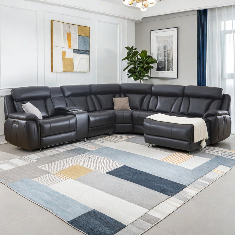 117.5'' Oversize Breathable Leather Power Reclining Sectional with Adjustable Headrest, USB