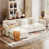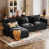 About This ProductThis 115-inch wide sectional sofa combines a solid wood frame with luxurious chenille upholstery, bringing both modern style and functionality to your home. Designed as a modular sectional, it comfortably seats 4-6 people with medium-firm foam cushions supported by sinuous springs for lasting comfort. The fully movable ottomans provide ample storage space and allow you to configure the sofa as a sectional couch in either a U-shaped Section or L-shaped couch layout, adapting perfectly to your space. Foam-filled back cushions with removable covers make maintenance easy, and the armrests come with two accent pillows for added comfort and style. Whether for entertaining or relaxing, this sectional is a versatile and stylish choice for any home.What's Included?1 SofaChair3 Toss PillowFeaturesModern Elegance: This sleek modular sectional enhances any contemporary space with premium materials and elegant design.Superior Comfort: Removable, plush back cushions and quality padding provide a cozy seating experience, with each seat measuring 31.5" W x 24.5" D.Hidden Storage: Each ottoman includes built-in storage, perfect for blankets, pillows, and other essentials.Durable Build: A sturdy wood frame and heavy-weight fabric ensure long-lasting durability for daily use.Easy Assembly & Versatile Layout: Quick to assemble with a modular design for effortless rearranging to fit any room.Show More