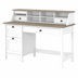 Upgrade your home office with this farmhouse-inspired 2-piece computer desk set, designed to make work a breeze. The desk boasts a reversible orientation, offering flexibility to fit your space. Crafted from engineered wood, it features a clean white base with five spacious drawers and five exterior shelves for ample storage. A handy keyboard tray is included for added convenience. The finished back adds a touch of elegance, while the 200 lb. tabletop weight capacity easily accommodates the included desktop hutch.What's Included?1 Desk(s)Chair(s)FeaturesHome office desk includes a built-in file drawer and a small box drawer for supplies; durable surface supports up to 200 poundsThe accessory shelf provides an ideal place to keep your phone, tablet, or other devices; can be installed on right or left based on your preferenceDesk Organizer features eight cubbies with two drawers that fit any compartment for a custom configurationBacked by the Bush Furniture 1 Year Manufacturer's WarrantyBacked by the Bush Furniture 1 Year Manufacturer's Warranty