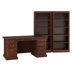 The executive desk, lateral file cabinet, and 5-shelf bookcases office set offer luxurious looks at a lasting value. Pen letters, pay bills, or outfit your professional-grade home or private office with a traditional executive desk built for everyday use. The durable thermally fused laminate finish lasts for years while resisting scratches and stains. Black desktop inserts further protect the wide work surface and enhance the warm finish. Gold-finished Brass hardware and timeless design accents match the traditional styling of your home office or professional workspace. Not just for looks, the executive desk contains three full-extension file drawers gliding on smooth ball-bearing slides for easy access to contents. A pair of box drawers and the center pencil drawer accommodate writing utensils and office supplies. The lateral file Cabinet accepts letter, legal and A4-size files. A lockable upper drawer secures your most important paperwork, and the Cabinet matches desk height to extend your work surface. Each 5-shelf bookcase contains two fixed shelves for stability and three adjustable shelves. Move these shelves up or down to store and display books, photos, plants, and reference materials of different heights. Browse the full collection of coordinating commercial office furniture.What's Included?1 Filing Cabinet(s)Bookcase(s)1 Desk(s)Chair(s)