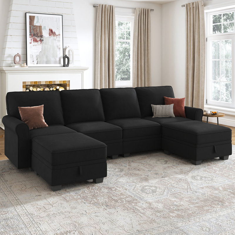 Anureet U-shaped Modular Sectional Sofa Reversible With Storage Ottoman