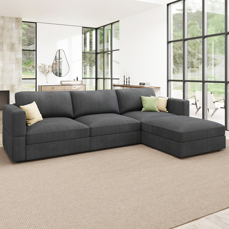 Latitude Run® L-shaped Modular Corduroy Sectional Couch