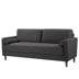 This sofa lends additional seating and modern style to your living room. Crafted with a solid eucalyptus wood frame, it sits on tapered solid wood legs with a java finish. This couch is wrapped in 100% polyester, with cushions filled with foam and supported by coil springs to help prevent sagging over time. We love how the square arms and cushion back give this sofa a modern design. Tufted cushions round out its look. Plus, the back cushions are removable, so it's a cinch to vacuum up any crumbs. This sofa includes cylindrical pillows for an extra layer of texture.What's Included?2 Toss Pillow(s)FeaturesUpholstered in soft polyester fabric for a cozy and inviting feelTufted seat cushions and two matching throw pillows add a touch of elegancePocket coils and high-density foam seating for optimal support and comfortTapered wood legs contribute to the sofa's midcentury aestheticEasy, no-tool assembly for quick and hassle-free setupMatching loveseat and armchair available for a cohesive living room ensemble